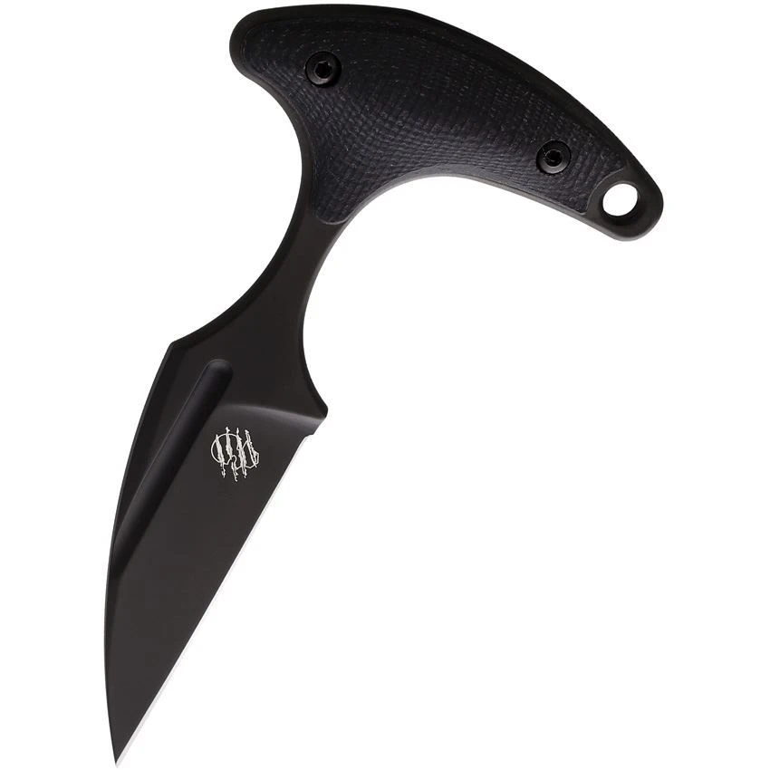 Model – BAS208. Bastinelli 208 – Innocent Push Dagger Fixed Blade Knife. 3.5″ overall. 1.88″ black PVD coated Bohler N690 stainless Wharncliffe blade. Black G10 handle. Full tang. Lanyard hole. Black Kydex belt sheath. Boxed. Made in Italy.
