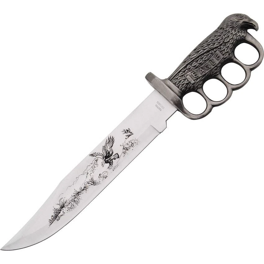 - China Made M1925 – Eagle Bowie Fixed Blade Knife with Antique Silver Finish Sculpted Cast Metal Handle