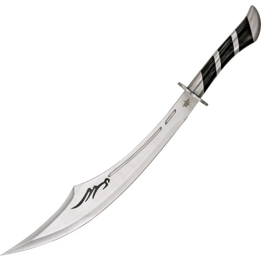 Model – M3680. China Made M3680 – Fantasy Fixed Blade Knife. 25″ overall. 17 1/4″ upswept stainless blade. Full tang. Laminated black wood handle with stainless stripes. Stainless guard. Zippered black nylon belt sheath. Mfr Part Number: FM-528. Made in China.