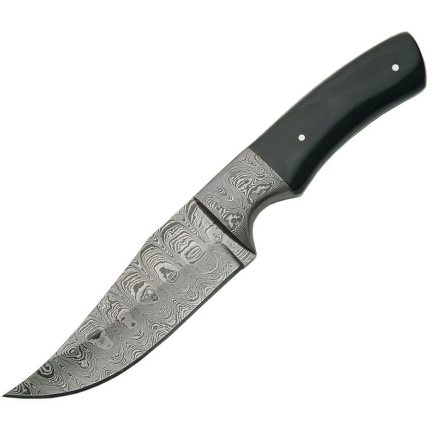 - Clip Point Hunter Fixed Damascus Steel Blade Knife with Black Horn Handles
