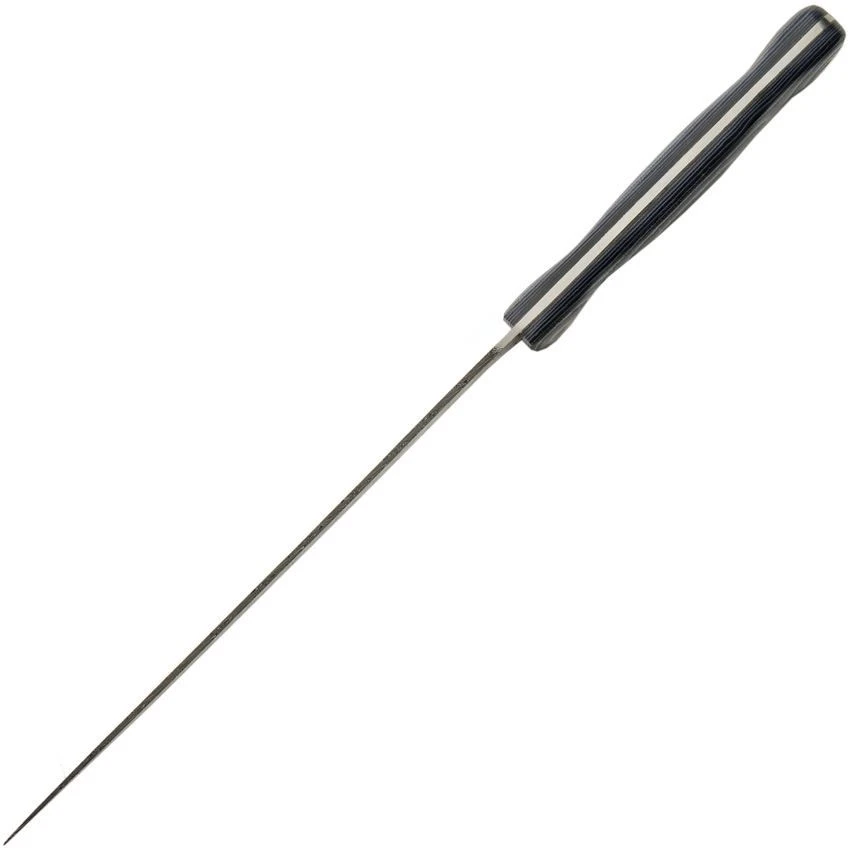 Model/Part Number – DM1319. Damascus Knives Fillet Knife. 12.5″ (31.75cm) overall. 7.5″ (19.05cm) Damascus steel fillet blade. Black and white micarta handle. Full tang. Lanyard hole. Boxed. Made in Pakistan.