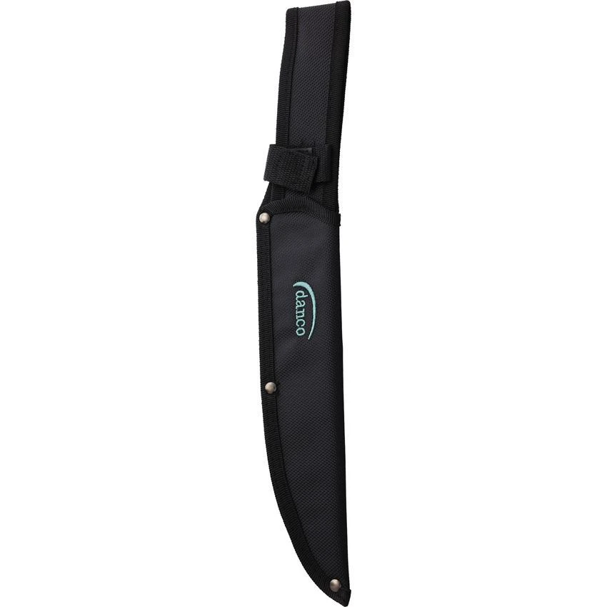 Model/Part Number – DNC71442. Danco Pro Series 9in Skinny Fillet. 14.5″ (36.83cm) overall. 9″ (22.86cm) black Teflon coated 1.4116 stainless fillet blade. Black and teal rubberized synthetic handle. Black nylon belt sheath. Boxed. Made in China.