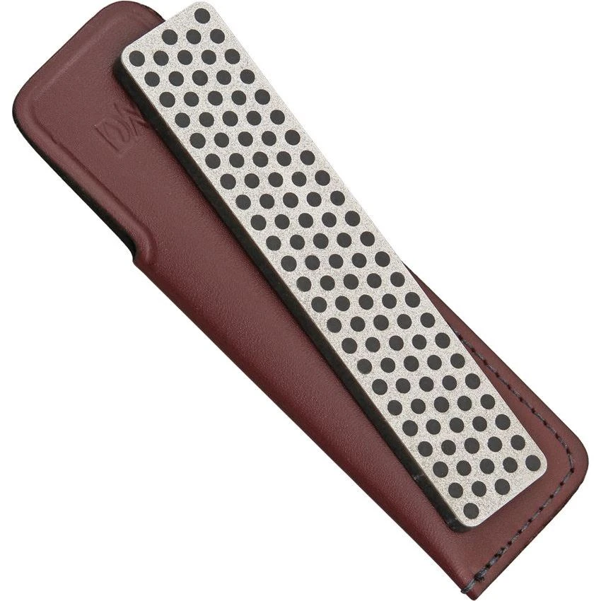 Model – DMTW4X. Black Extra Coarse Grit Pocket Diamond Stone. Diamond stone measures 4.38 inch x.88 inch. Black, extra coarse grit. 220 mesh. Comes with leather sheath. Hang packaged. Proudly made in the USA.