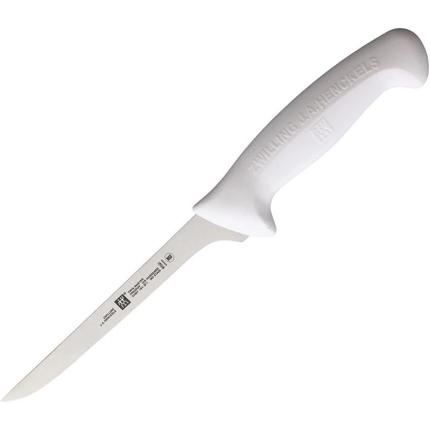 Model/Part Number – HEN32301164. Henckels Knives Twin Master Flex Boning. 12″ (30.48cm) overall. 6.5″ (16.51cm) satin finish stainless blade. White plastic handle. Hang packaged. Made in Spain.
