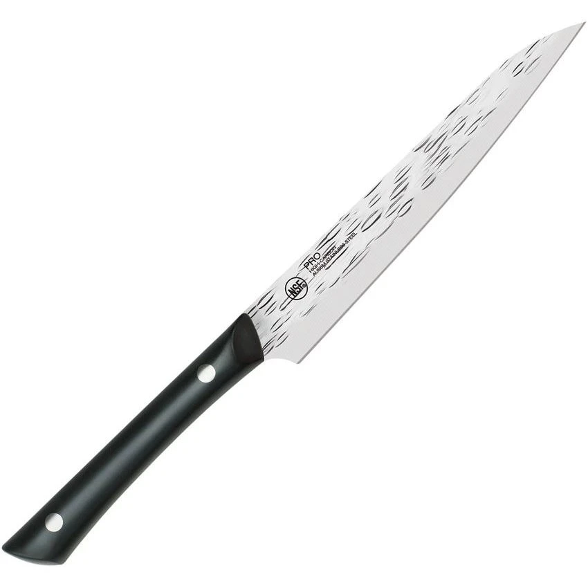 Model/Part Number – KAIHT7084. Kai Professional Utility. 10.5″ overall. 6″ hammered finish AUS-6M stainless blade. Black POM handle. Full tang. Full tang. Clam packed. Made in China.