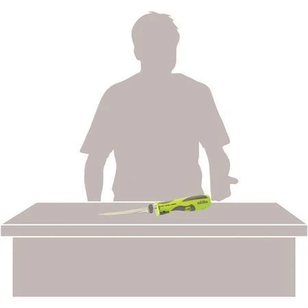 Model – AC51207. Mr. Crappie Slab-O-Matic. Includes 4.5 inch and 8 inch serrated blades. Comfort grip handle. Includes fillet glove and ABS blade covers, and mesh carry bag. Blade release button. Blade lock. Power button. Clam packed. Made in China