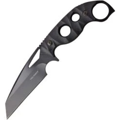 Model – TFFIX010BK. Tac Force FIX010BK – Fixed Blade Knife with Black G10 Handle. 8.5″ overall. 4″ black finish 3Cr13 stainless blade. Black G10 handle. Full, extended tang. Finger ring. Black nylon belt sheath. Boxed. Made in China.