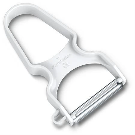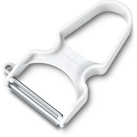 Model – VN60930. Rapid Peeler White. 5.5 inch (13.97cm) overall. White ABS handle. Dishwasher safe. Ultra sharp straight edge blades. Lateral potato eye remover. Boxed with hanging tab. Made in Switzerland.